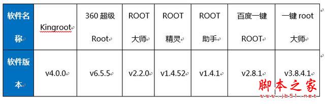 本次测试以手机版的root工具为准,分别选择了市面上主流的7款root工具,分别是:KingRoot、360超级Root、Root大师、Root精灵、ROOT助手、百度一键Root和一键root大师,7个工具,对应的版本分别如下: