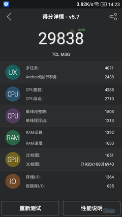 系统流畅度方面,两者差别不大,只要是正常情况下滑动屏幕,系统反应都会比较快速,也很跟手。但在开启应用时就有了明显的差别。小编试了几款自带应用和安装应用,包括时钟、设置、主题、自带音乐播放器、安兔兔测试软件、QQ和地铁跑酷,华为荣耀畅玩4C的开启速度明显要快于TCL么么哒3S,当然这只是对比来说。同时得益于华为EMUI的高度成熟度,EMUI3.0的稳定性和流畅性要比乐蛙OS6好一些。在打开输入法或某些情况,乐蛙OS6还是会出现一些卡顿的情况。