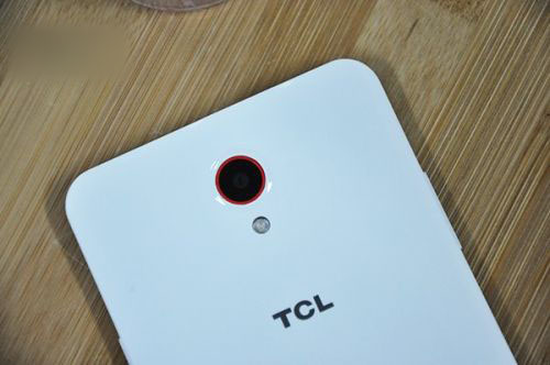 机身背面采用了钢琴烤漆工艺处理,能够提供足够的摩擦力,缺点是非常容易沾染指纹。此外该机后壳边缘还采用了弧形处理,手感比较舒适。背面顶部是一颗800万像素摄像头,摄像头周围有一个红圈,多了一些设计感,但摄像头有略微凸起。摄像头下面是闪光灯,扬声器则放在了背面底部,正面平方时容易阻挡发声,但建议平时还是使用耳机来播放多媒体吧,因为该扬声器实在惨不忍睹,当然,这些都是以499元的价格为前提的。