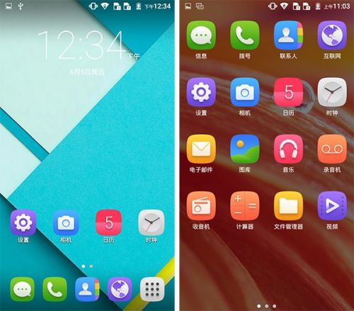 系统应用图标全都采用了圆角矩形的设计,同时对原生安卓5.0自带应用图标进行了重绘,至于美观度就见仁见智了,笔者还是更喜欢原生安卓5.0的应用图标,看起来更加高大上。
