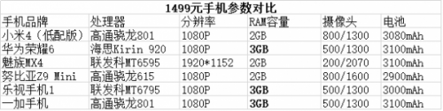 N多手机厂商最近这段时间都将价格降到了1499元,这让原本就不平静的国产手机市场变的更加热闹起来。在1499价位上的手机主要有:小米4、荣耀6、 魅族MX4、努比亚Z9 mini、乐视手机1、一加手机。这些手机在硬件配置方面均不相同,对于消费者来讲选择起来也有不小的难点,下面笔者就从硬件配置、性能方面,为大家逐一 分析下这些产品吧。