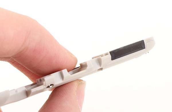 不同于上一代魅蓝Note一体化机身设计,新一代魅蓝Note2采用更利于组装的可拆卸卡扣式后盖设计,并且也降低了后壳聚碳酸酯的厚度,如下图所示。