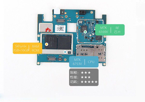 主板方面,此次魅蓝Note2采用了有史以来集成度最高的MTK6753系列SOC,并且所有芯片均副高金属屏蔽罩,如下图所示。