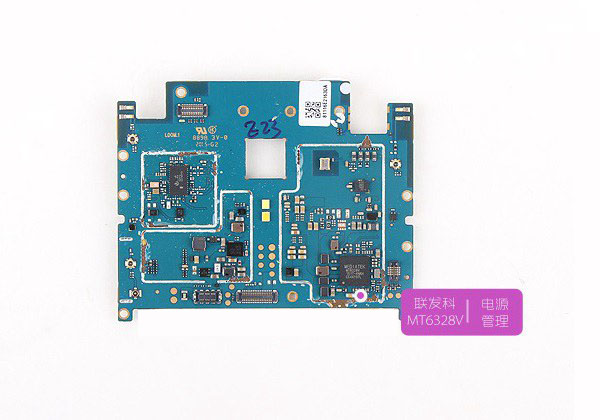 图为魅蓝Note2内部主板另外一面集成的芯片特写,下图标注的为联发科MT6328V芯片。