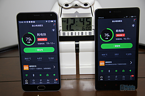 我们跳过1280x720像素(红米Note)和1920x1080像素(魅蓝note2)的屏幕对比,这并不像1080像2K过渡那样的不令人察觉,因为两者在根本上有质的差异,尽管MIUI V6有做优化,但图标和文字的锯齿感依然感动天感动地。所以我们直接进入这个价格段更令消费者关心的问题,续航。