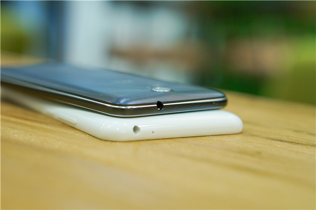▲么么哒 3S 的摄像头稍稍凸起,而魅蓝 note 2 的则十分平整。