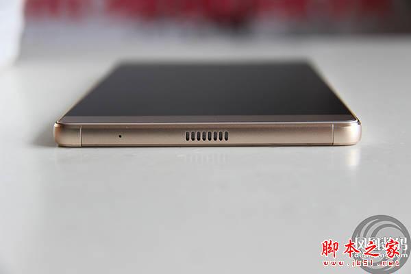 所以的按键和接口,包括扬声器均位于机身侧面边框上,3.5mm耳机孔和microUSB接口均位于机身顶部,底部只有扬声器。P8max的每颗金属按键和接口的处理都非常精致有型。