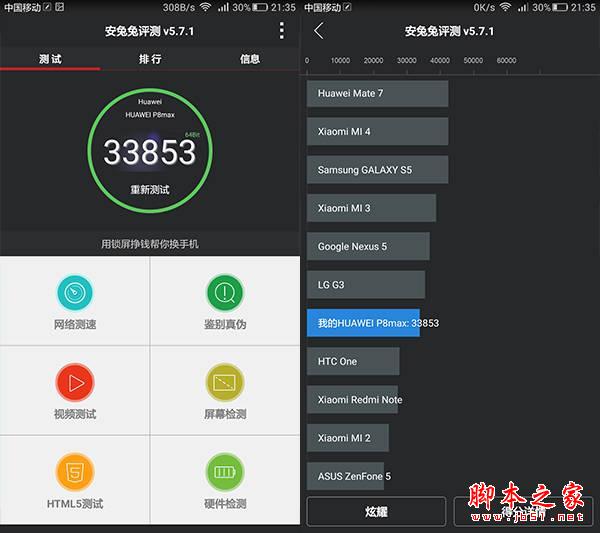 从实际游戏和跑分来看,这颗麒麟935八核处理器的表现一般,基本和高通上代骁龙800不想上下。图形性能方面,这款Mali-T628 MP4在跑分上表现并不出众,在实际游戏《真实赛车3》中,华为P8max运行整体还算流畅,只是在光线条件复杂和车辆较多的场景下,会出现帧率下降的情况。