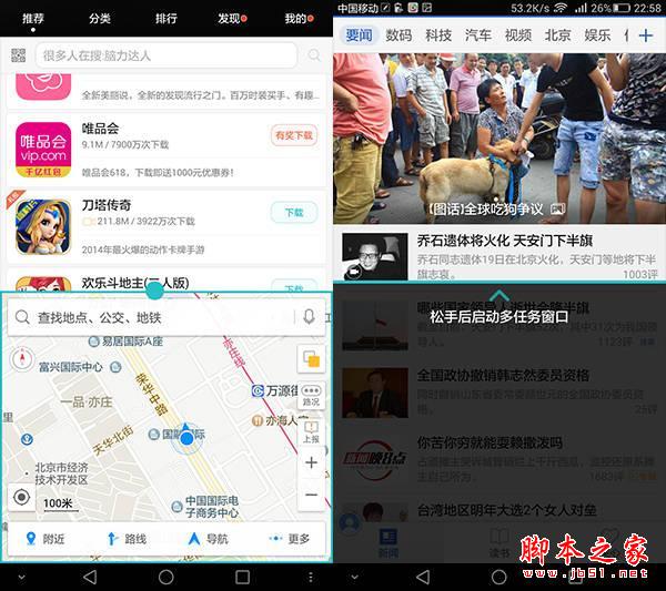 同时华为P8max提供了全新的分屏模式,用户只需要双指从home键上滑即可开启,之后屏幕就被一分为二,可以同时显示两款应用了。分屏模式充分利用了6.8英寸屏的优势。为多场景下的移动办公提供了更好的支持。