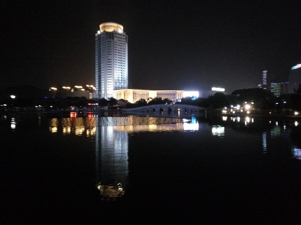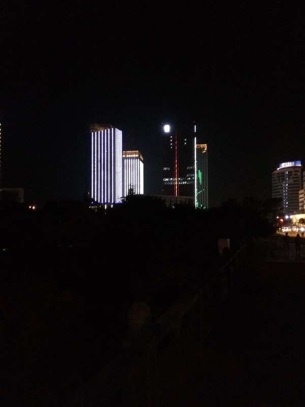 在晚上室外拍摄时如果使用普通模式,只能得到非常普通的相片。好在“绚彩夜拍”模式非常实用,相同场景上侧图片为普通模式,下侧图片为开启“绚彩夜拍”模式,可以看到区别非常明显,而且夜拍模式的拍摄速度也非常快,不至于像开启HDR模式或者超清模式时需要极大的耐心。