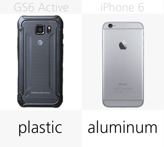 标准版Galaxy S6由玻璃后盖和铝合金中框组成,但是在坚固度上有所不足。Active设备为了三防依然采用塑料材质。