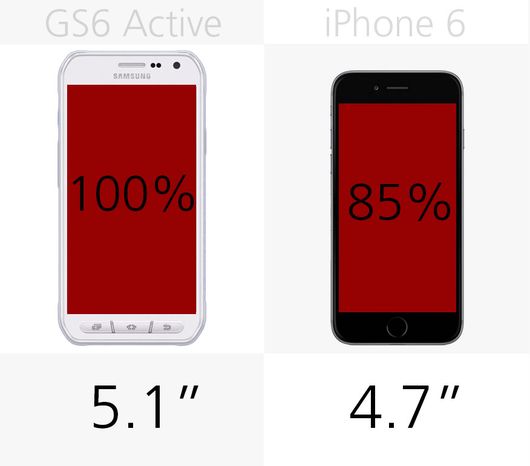 iPhone6 Plus拥有更大的5.5英寸屏幕,Galaxy S6 Active则为5.1英寸,要比4.7英寸iPhone6大18%。