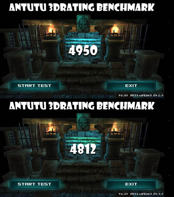 Antutu 3DRating(ES2.0得分4950/ES3.0得分4812)