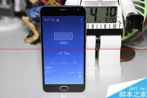 经过90分钟一整部在线电影播放之后,魅蓝2掉电16%,温度升至35°。