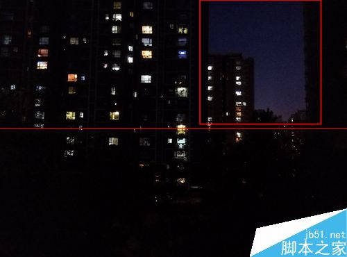 到了夜晚,魅蓝2对于万家灯火的表现依然抢眼,暗部噪点控制不错,只是在红框内出现了轻微的红白噪点。