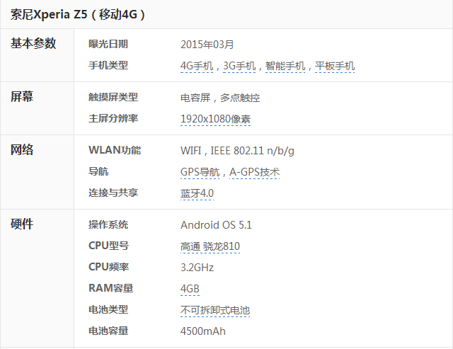 配置方面,Xperia Z5可能会配备2K分辨率显示屏,搭载骁龙820处理器,内置4GB运行内存,选用2100万像素的Exmor RS IMX230传感器,支持类似单反相机的相位对焦,以及4K分辨率实时HDR视频录制。为了增加续航,该机的电池容量将达到4500mAh。