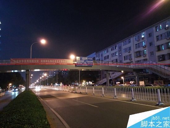夜晚环境下,由于光线相对白天来说少了很多,Z1的拍摄质量会随之下滑不少,不仅会出现前文提到的屏幕拖影问题,而且放大图片后可以发现照片的涂抹感比较明显,从而会损失不少图片细节。对焦速度明显会比白天时慢一些,但仍可以保证在1秒钟内完成对焦工作,依托于OIS防抖系统,会大大避免由于手抖而导致照片拍虚的现象发生。