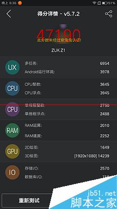 ZUK Z1采用高通骁龙801八核处理器并配以3GB运行内存,这个配置在目前市面来说也称得上是中高端配置。该机在跑分软件中得到的分数是47190分,稍逊于三星Galaxy Note 4,通过实际的使用可以发现,ZUK Z1完全可以满足大部分用户的日常使用需求。