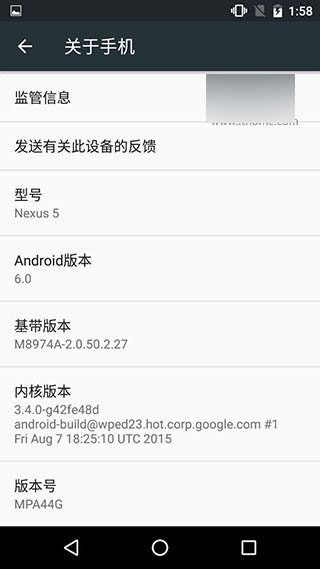 ▲安卓版本已经升级到了6.0版本,版本号为MPA44G