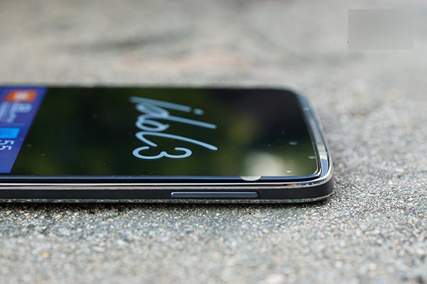 正面是TCL idol3设计上也是实现正反通话的关键所在,正面屏幕保护玻璃较机身略小一圈,而且高出机身侧面,四周以黑色的硬质塑料框加以保护,这就形成了类似“悬浮屏”的造型,颇具设计感和科技感。