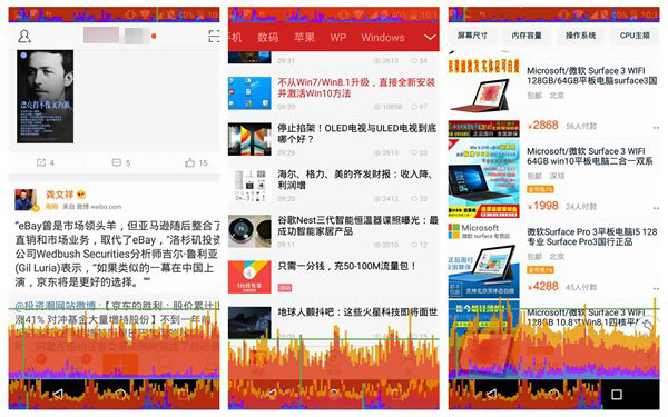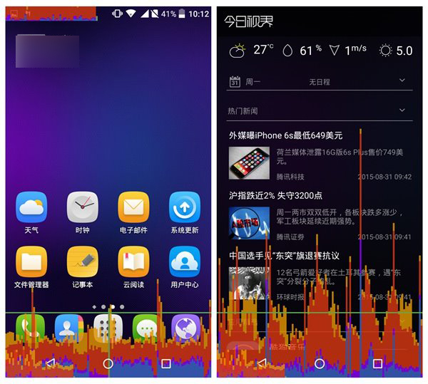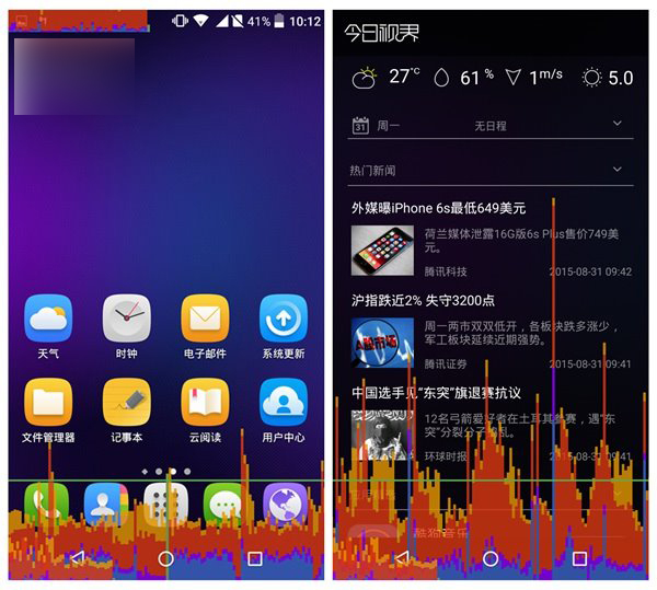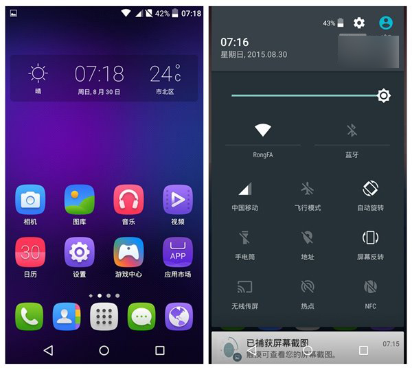 TCL idol3的硬件配置只能算是勉强够用,主屏幕左右滑动时存在十分轻微的掉帧现象,第一屏左侧加入的“今日视界”页面与主屏幕之间的衔接优化不够给力,从主屏幕滑入该页面时存在较为明显的掉帧现象。