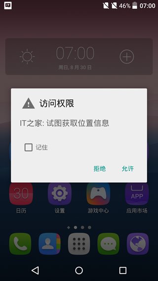 TCL idol3在安装应用时,系统只会给出应用所需权限的描述和简介,但不会提供给用户选择项,当应用需要使用某个权限时,系统会给出相应的弹窗要求用户选择,这样的设计初衷是好的,不过,当后台应用数量过多时,我们很可能面临要处理一大堆弹窗提示的窘境。
