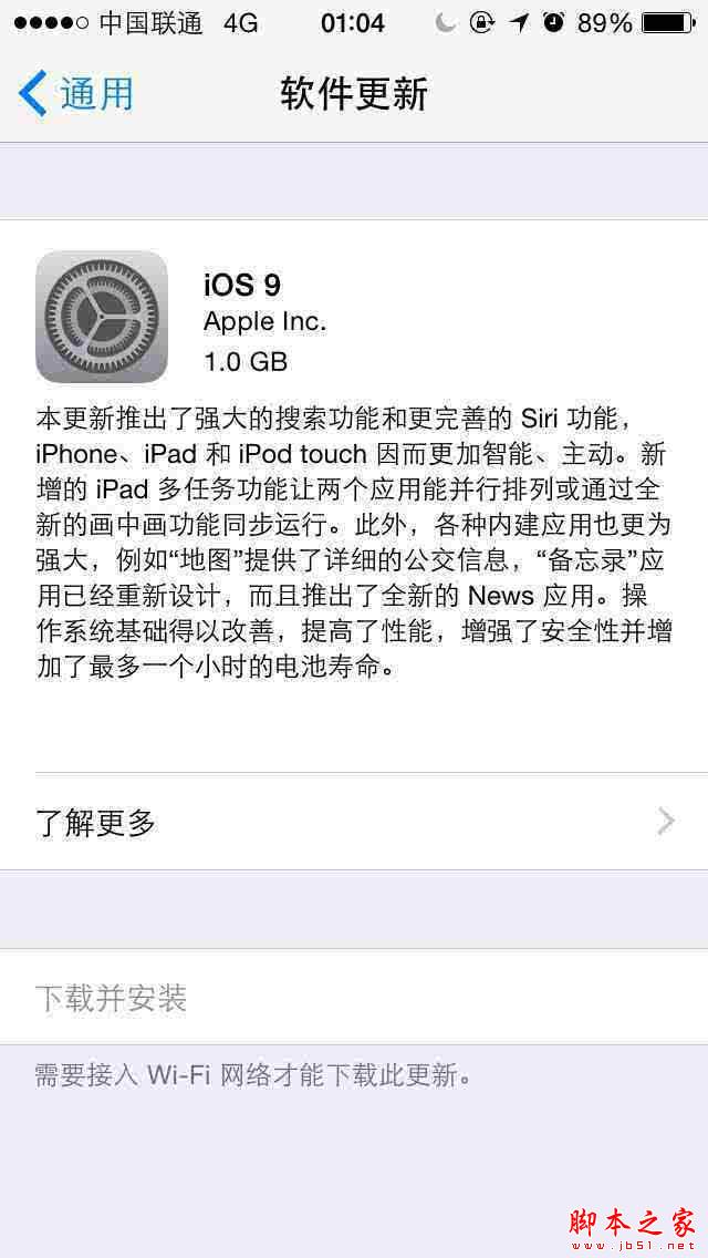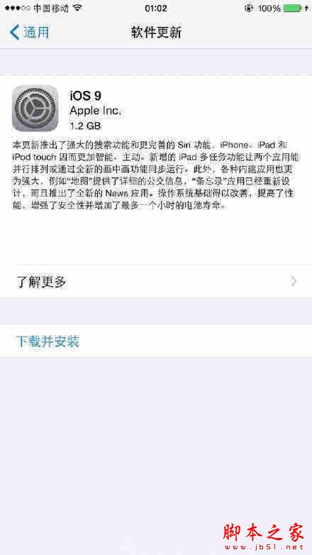 iPhone5s iOS 9更新包大小为1GB iPhone6 iOS 9更新包大小为1.2GB