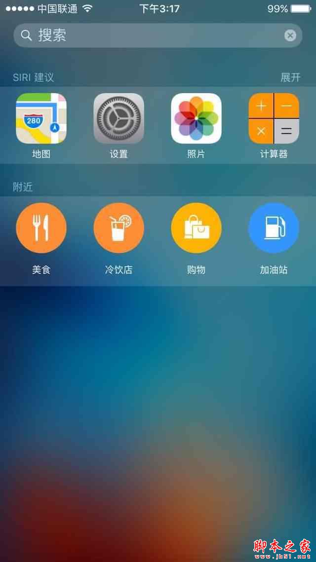 iOS 8主界面下拉菜单 iOS 9主界面下拉菜单