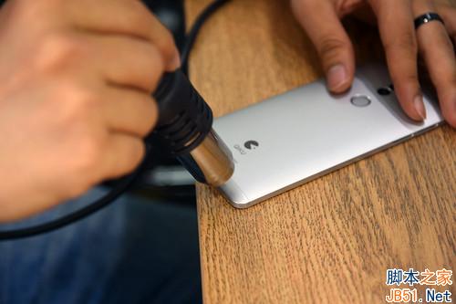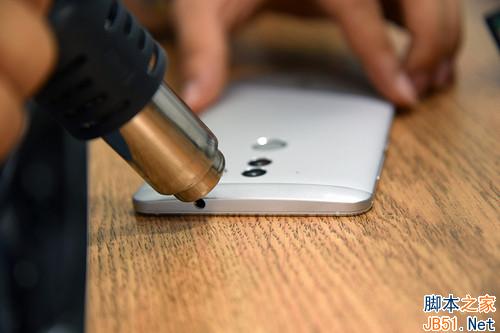 不过我们先别急,先用热风吹枪把屏幕的部分也进行吹热,拆解。