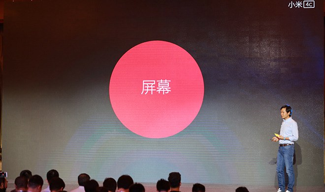 雷军讲完处理器后,为大家讲解小米手机4c屏幕的相关信息。