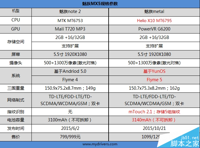 可以看到,与自家的魅蓝note2相比,魅蓝metal的性价比进一步提升。