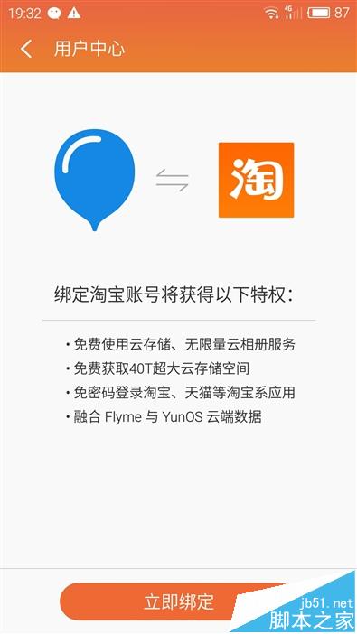 YunOS与Flyme账号进行了深度融合,其中,Flyme账户可以和淘宝账户绑定进行购物。