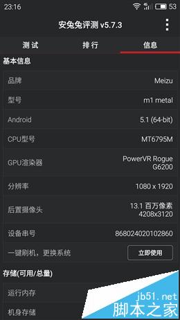 虽然看跑分的都是屌丝,但是对于买买买的用户来说,看了心里也踏实,从跑分成绩看来,魅蓝metal这个配置完全能够满足用户对于高清视频和大型游戏的使用需求。
