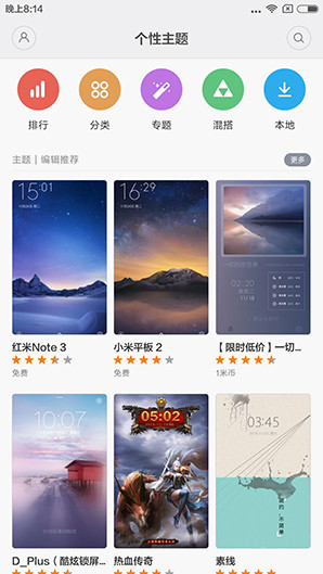 除了解锁操作之外,红米Note 3的指纹识别还可用于指纹支付、文件加密,以及儿童模式,用途较广。当然相比其他早已加入指纹识别的友商来说,MIUI对于手机“指纹识别”所用场景还需要进一步扩展。说到MIUI,其实与本年度发布的前几款机型一样,红米Note 3也搭载了基于Andriod深度定制的MIUI 7,预置5套系统UI,同时还拥有众多个性主题供用户选择,至于“巨无霸”大字体也得到了延续,同时还优化了响应速度以及手机续航。