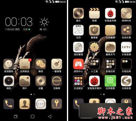 此次锋尚MAX对微信、乐视系列应用与自家的主题深度整合,金色统一的图标设计带来更好的视觉效果。有酷派设计的最美天气自然也不能拉下,一并为用户带来最美最流畅的体验。