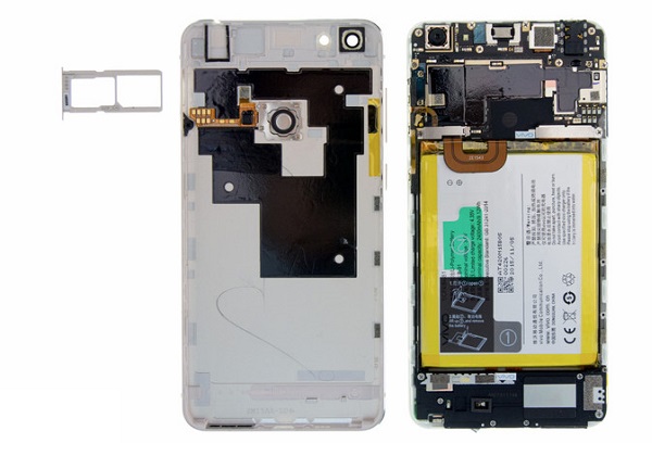 vivo X6的金属后盖采用了纳米注塑工艺,在内侧有一圈塑料的卡扣,但因后壳中框为金属,导致实际很难拆卸。