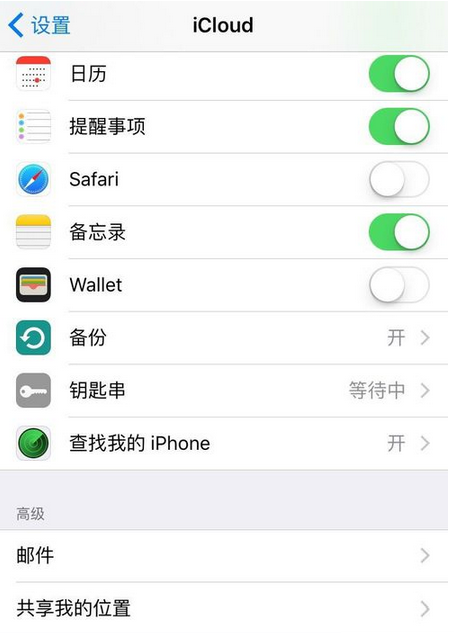 『设置』——『icloud』 进入iCloud后,找到『邮件』,点进去