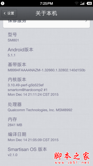 内存方面,Smartisan T2内置3GB双通道LPDDR3@933MHz RAM,16/32GB eMMC 5.0 ROM,整体配置可以说是相当够用。