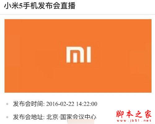 今日,有网友晒出了疑似小米5发布会的直播专题,显示小米5将在2月22日(元宵节/MWC开幕日)正式发布。