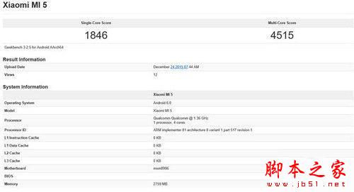 小米5安兔兔跑分数据曝光: