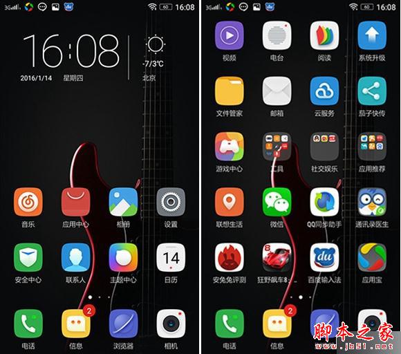 系统方面,联想乐檬3搭载了基于Android系统深度定制的VIBE UI,而且是Android 5.1内核,在同价位机型中存在一定的优势。对于VIBE UI,相信大家比较熟悉,一体化的桌面设计,简约圆润的图标,操控体验以及视觉层面都较为舒适。同时,这款手机本身预置了多套本地主题,壁纸则沿用了高端机型乐檬X3的系统壁纸,加之1080p全高清显示屏,显示效果颇为出彩。