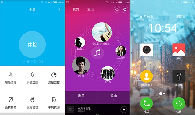 在系统UI方面,布拉格S采用基于Andriod 5.0.2的nubia UI 3.1系统。该系统依旧是采用扁平化的图标风格,并且配合卡片抽屉式的交互设计理念,整体观感简约却不失个性色彩。相比于目前人气较高的MIUI和Flyme系统来说,努比亚的系统有其独特的一面,例如桌面的相机菜单、特有的边缘手势、分屏模式功能等等,下面小编就带大家看看,nubia UI 3.1到底有何过人之处。