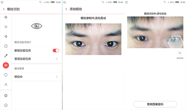 ▲眼纹识别功能