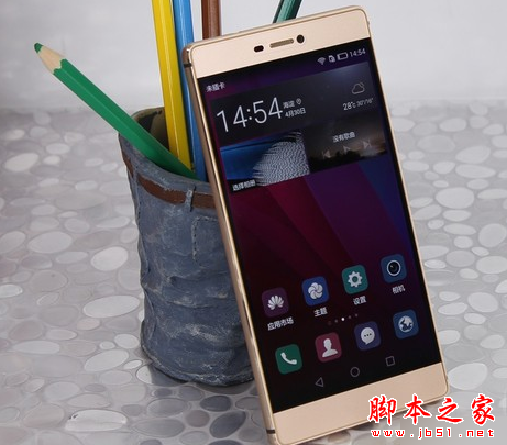 华为P8机身正面采用一块5英寸的显示屏,拥有720P级别的分辨率,正面上方是常见的前置摄像头、听筒和光感器;虚拟按键设计在了屏幕内侧。