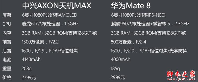 以上就是对中兴AXON天机MAX和华为Mate8全面区别对比评测全部内容的介绍,请继续关注脚本之家!