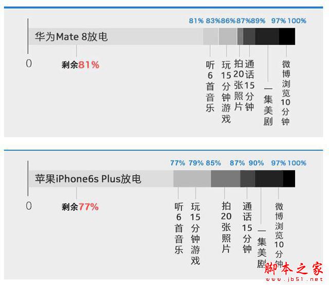 测试结果:iPhone 6s Plus掉电2%,Mate 8掉电1%。
