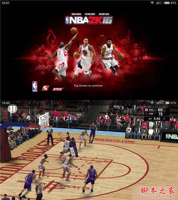 12:00-13:00一小时大型游戏,玩大型体育游戏:NBA 2K16。高通骁龙808的Adreno 418 GPU足以应付游戏的大多数场景。不过发热就无法避免,经过一小时的游戏之后、机身背面明显发热,金属边框甚至有点烫手。这一阶段剩余电量还有57%,不怕电量见红和烫手的话再玩三个小时也不成问题。