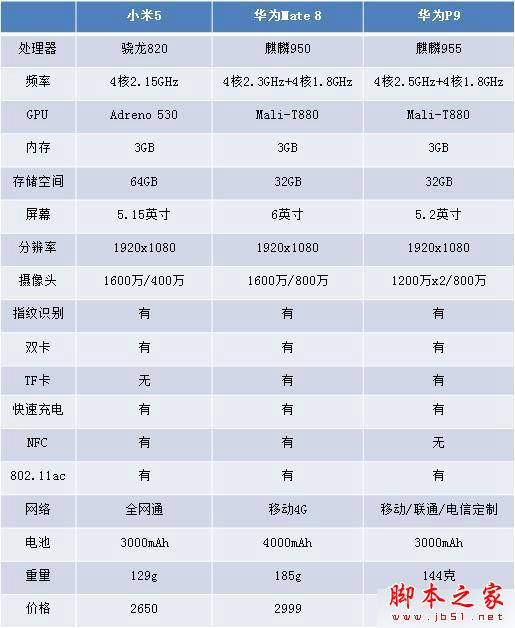 以上就是对华为P9和Mate8/小米5高配版对比评测全部内容的介绍,更多内容请继续关注脚本之家!