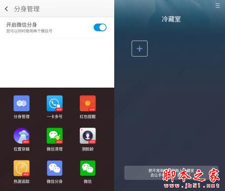 ▼介于360OS操作系统的优化,其内置了不少有趣既实用的软件,例如“微信分身”可以同时运行两个微信账号、“冷藏室”可以把不用的软件放在里面,不会占内存。