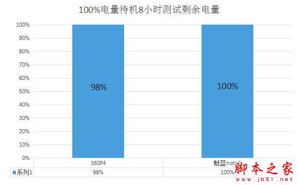 ▼测试后,魅蓝note3竟然剩余电量还是100%,不过肯定是虚的100%电量。再来一组50%电量时候,待机8小时的测试吧。